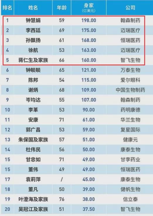 疫情下一批医药公司股价飙升,也带动许多企业家实现财富跃升。