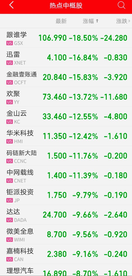 炣燃科技8月8日综合数据宝讯中概股大跌。