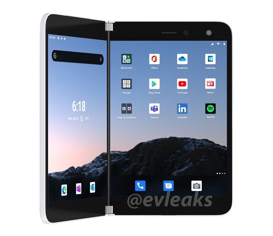 IT之家了解到,Surface Duo 将搭载骁龙 855 SoC 并辅以 6 GB RAM 和 64/256 GB 的存储方案,配备 3,460 mAh 电池,拥有两块分辨率为 1800 x 1350 的 AMOLED 5.6 英寸屏幕,支持用户通过指纹读取器进行生物识别,预装 Android 10 并在发布后推送 Android 11 更新。