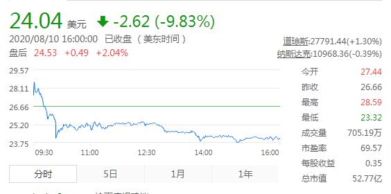 截止周一收盘,虎牙下跌9.83%,报24.04美元,总市值52.77亿美元。