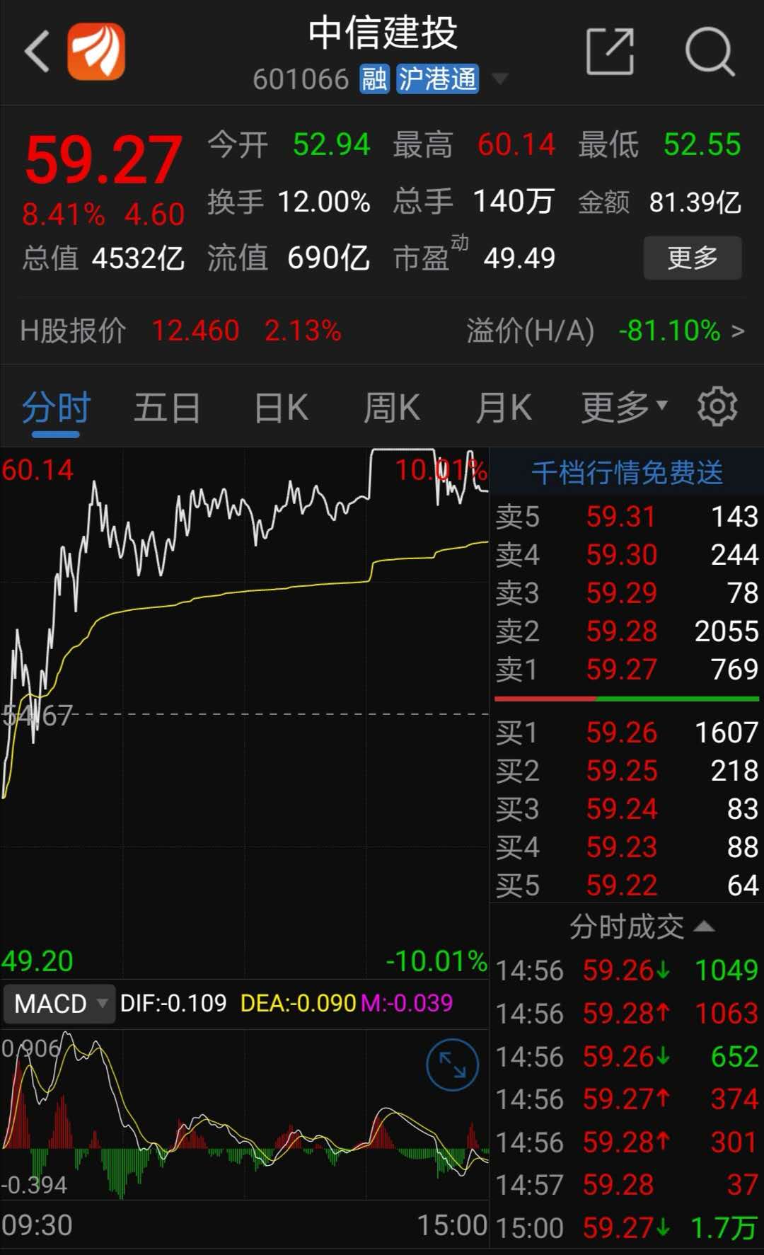 回顾中信建投当天走势:开盘约一个小时后,股价涨逾5%,而后涨幅一度突破8%,截至午盘中信建投涨幅逾7%。午后再度涨停,股价一度突破60元/股,临近收盘涨停板打开,涨幅略有收窄。当天该股换手率12%,交易额81.39亿元。