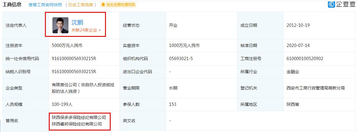 企查查显示:水滴保是保多多保险经纪公司打造的互联网保险优选平台,而保多多保险经纪公司由水滴公司创始人沈鹏亲任法定代表人。