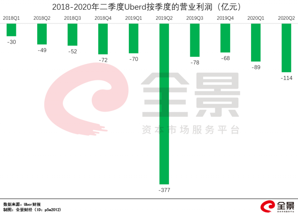 尽管,Uber的外卖生意做得风生水起,但依然没有摆脱亏损的阴影。据财报显示,2020二季度的外卖收入为69.6亿美元,息税前利润为-2.32亿美元。