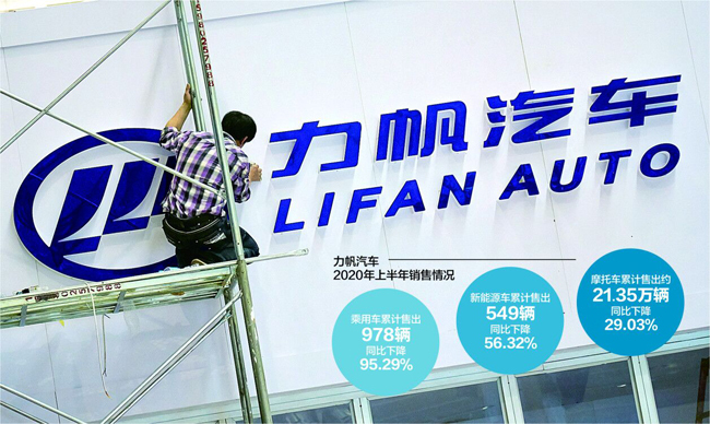 2020年上半年,力帆传统乘用车累计售出978辆,同比下降95.29%视觉中国图 杨靖制图