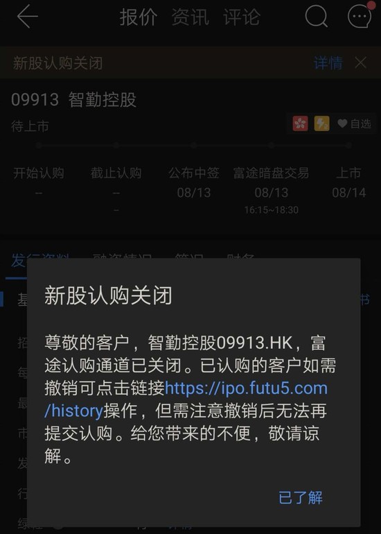 友信证券、富途证券、华盛证券等纷纷取消新股申购,已认购客户可以随时撤销。