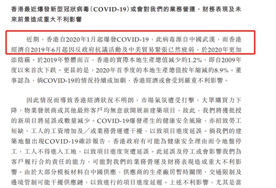 7月底,智勤控股惊现“此病毒源自中國武漢”,智勤控股表示,近期,香港自2020年1月起爆发COVID-19,此病毒源自中国武汉。