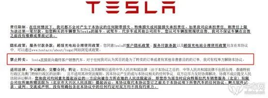 事实上,特斯拉的"禁止转卖"条款,被质疑赋予了特斯拉"无条件否决权"。