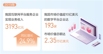 近年来,我国平台经济快速壮大,一批新产业、新模式、新业态发展方兴未艾。中国信息通信研究院发布的《中国数字经济发展白皮书(2020年)》显示,去年我国互联网平台服务收入较快增长,以提供生产服务平台、生活服务平台、科技创新平台、公共服务平台等为主的互联网平台服务企业实现业务收入3193亿元,同比增长24.9%。