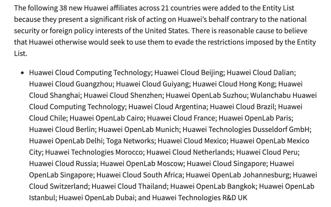 38家华为子公司被列入“实体清单”