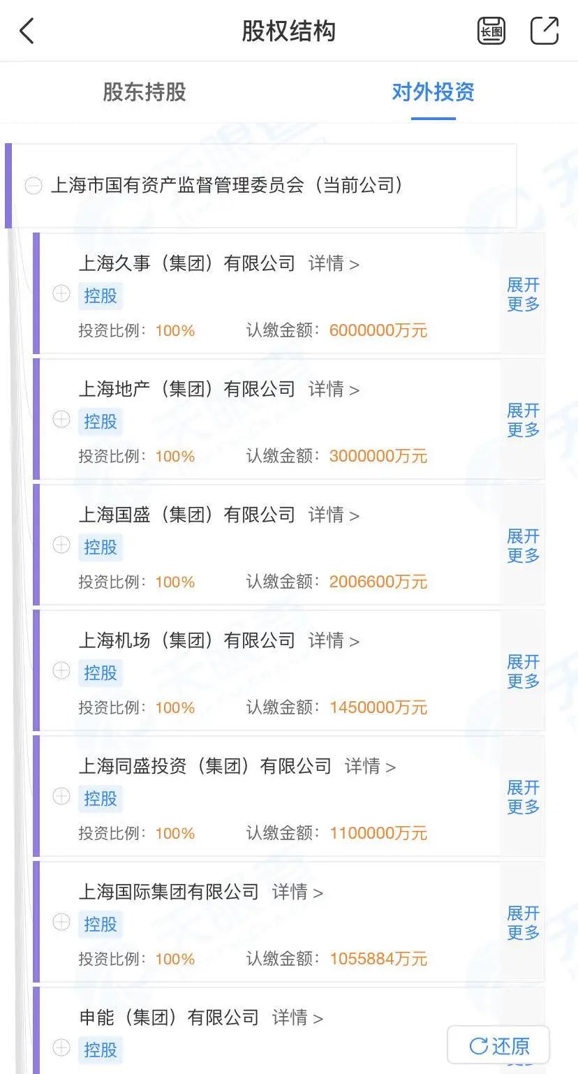 另外,天眼查显示,不论是股权转让方的上海国际集团还是受让方的上海久事集团,其实都由上海国资委100%控制。