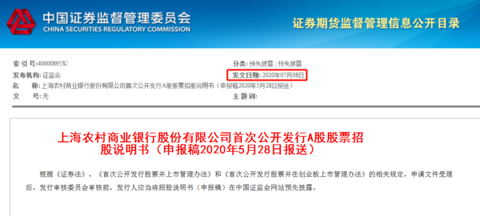 值得注意的是,在银保监会官网挂出同意批复后仅2天时间,2020年7月8日,上海农商行再次递交了招股书。
