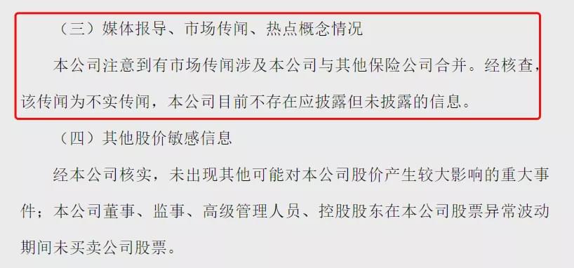 与其他保险公司合并传闻不实