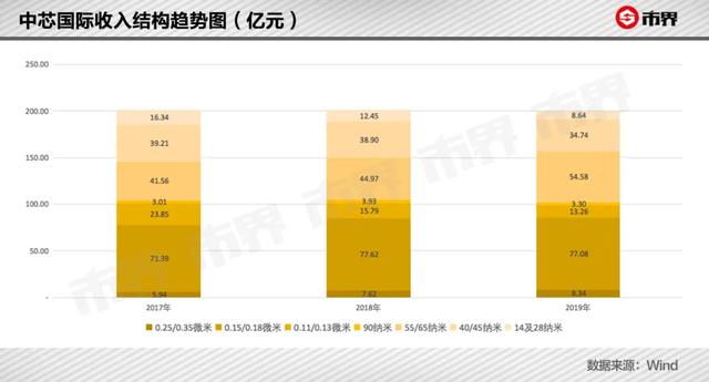 其收入主要是由技术上相对低端但商业应用更成熟的0.15/018微米和55/65纳米工艺贡献,最先进的14及28纳米工艺,近三年贡献的收入占比从8.12%降至4.32%。