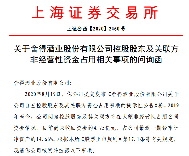 对此,上交所火速下发问询函,要求说明上述资金占用的具体发生过程、占用资金的实际流向。