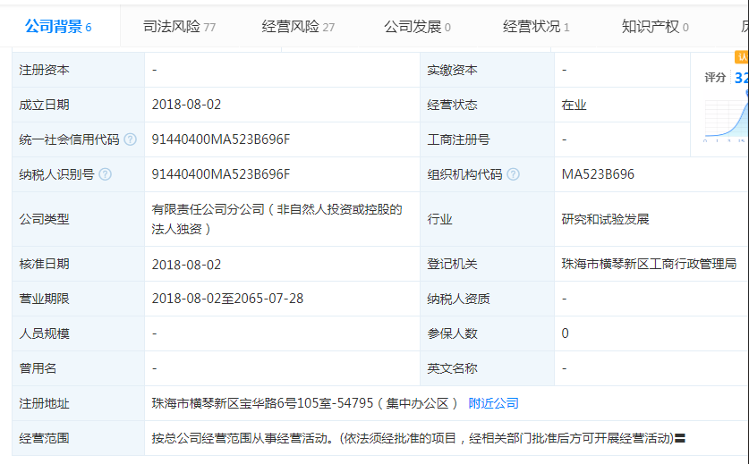 天眼查显示,滴滴出行珠海分公司成立于2018年8月2日,是滴滴出行科技有限公司在珠海的分公司。滴滴出行科技有限公司法定代表人是朱泽涛。