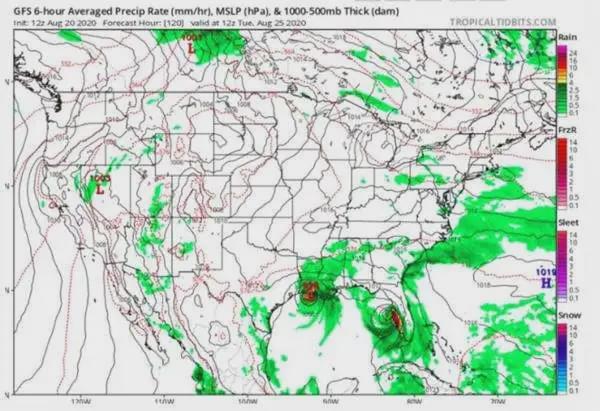 当地时间8月21日,据美国国家飓风中心的预测,目前在墨西哥湾有两个热带气旋正在活动,并有可能在下周初的时候,以热带风暴或飓风的形式同一时间登陆美国。其中,热带风暴劳拉预计在23日上午进入墨西哥湾,在8月25日左右增强为一级飓风抵达得克萨斯州和路易斯安那州海岸线,并有可能登陆。热带风暴马可则可能会在周一抵达佛罗里达州南部海岸,并在下周二左右增强为一级飓风,登陆阿拉巴马州海岸线等地。据美国国家海洋和大气管理局表示,两个热带气旋同时进入海湾的先例并不多,上次出现还是1933年。