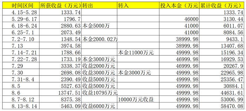 秦安股份还在公告中表示,本次净转出1.2亿元投资收益。截至目前,公司已累计转出约1亿元本金以及投资收益3.18亿元,账上期货投资本金始终保持在约5亿元水平。