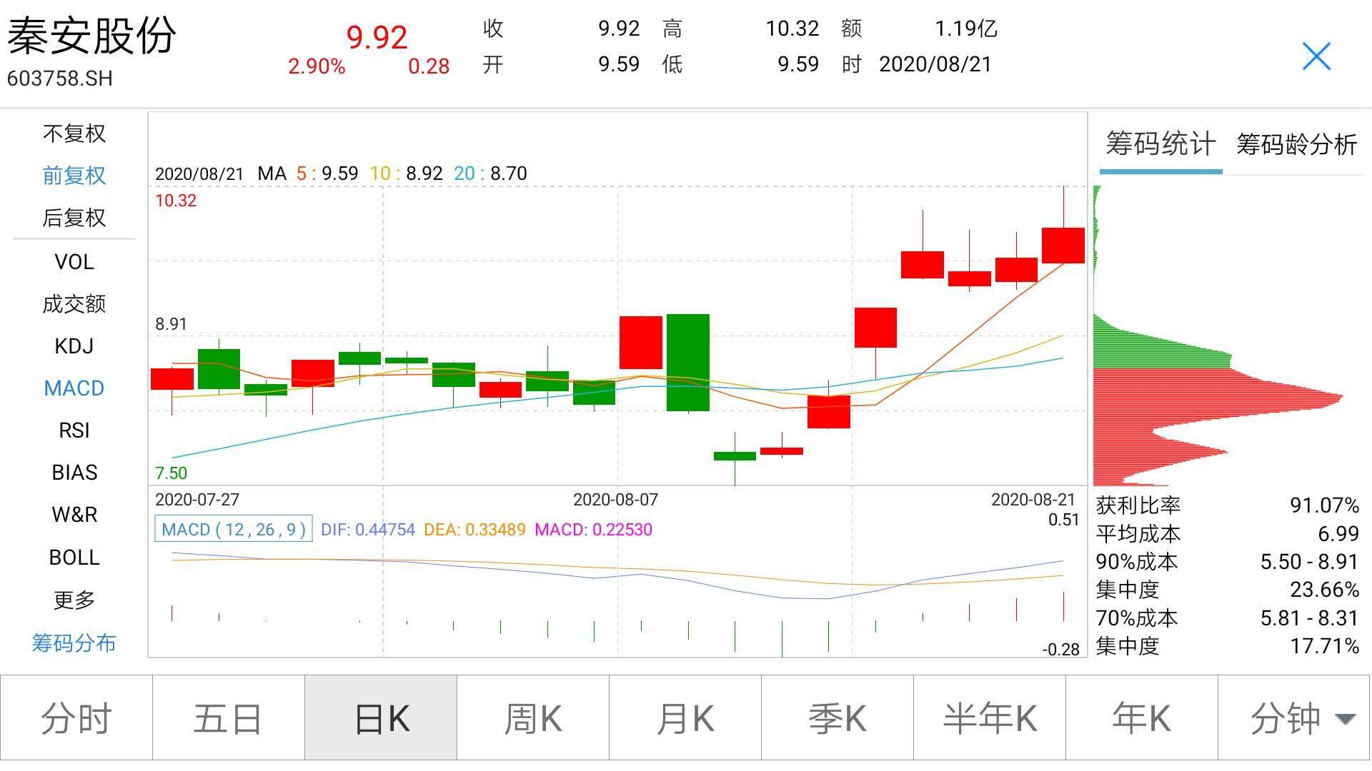 此外,秦安股份近期股价也随之走高,近8个交易日,公司股价已从8月12日收盘后的7.74元,涨至9.92元,期间累计涨幅达到28.17%。