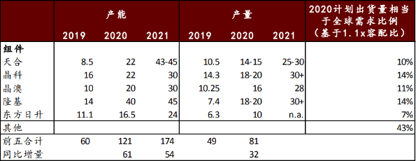 光伏行业本轮扩产,集中于龙头企业,而硅片龙头隆基股份更是行业先锋,其计划将组件产能由2019年的14GW扩至2021年的45GW。