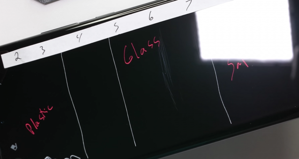 那三星 Note 20 ultra 的耐刮性怎么样呢?据油管博主 Zack Nelson 的测试,在 6 级莫氏硬度下,三星 note 20 ultra 的屏幕开始出现刮痕,并在 7 级硬度下出现了更深的凹槽。尽管如此,Zack Nelson 依然认为这款手机相当坚固耐用,原因可能是「同行衬的」。