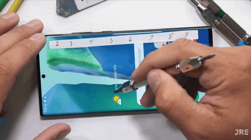 ▲Note 20 ultra 屏幕上的划痕. 图片来自:Zack Nelson