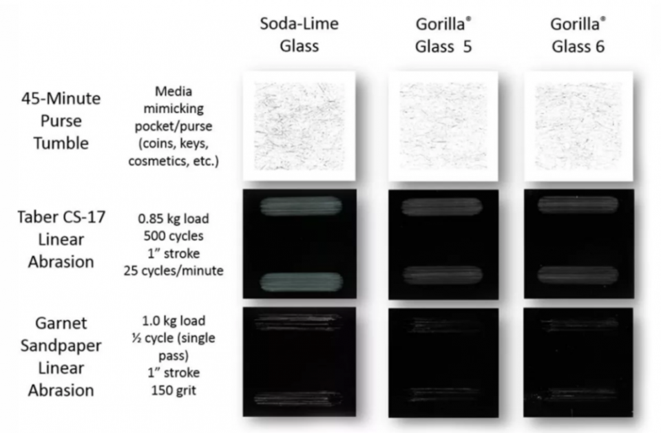 而在此期间,屏幕在耐磨性方面的进步则比较有限。康宁自己的测试也表明,从第三代到第六代大猩猩玻璃,抗刮性能都没有明显改善。康宁甚至表示,其早期玻璃具有更高的耐刮擦性。