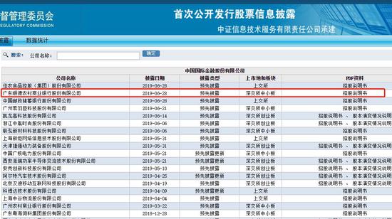 证监会官网信息显示,上周提交A股上市申报材料的广东顺德农商行,日前获证监会受理其上市申请,并在6月28日晚披露招股说明书。