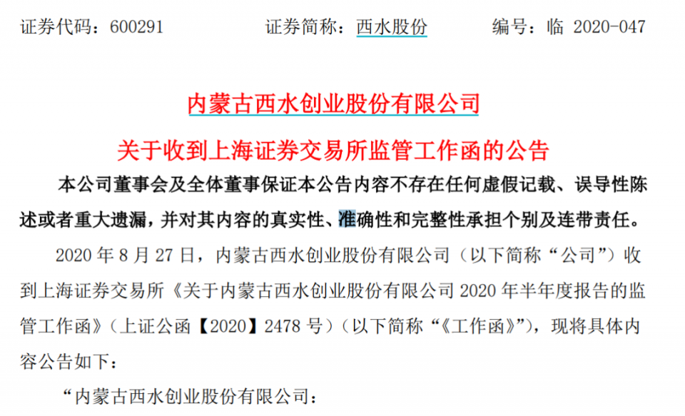 西水股份半年报一出来,上交所紧急下发了监管工作函,其中提到。