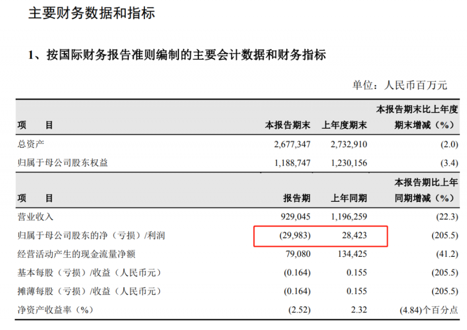 报告期内,中国石油实现营收9290.45亿元,去年同期为1.196万亿元,同比下滑22.3%;归母净亏损299.83亿元,上年同期净利润284.23亿元,同比下滑205.5%。