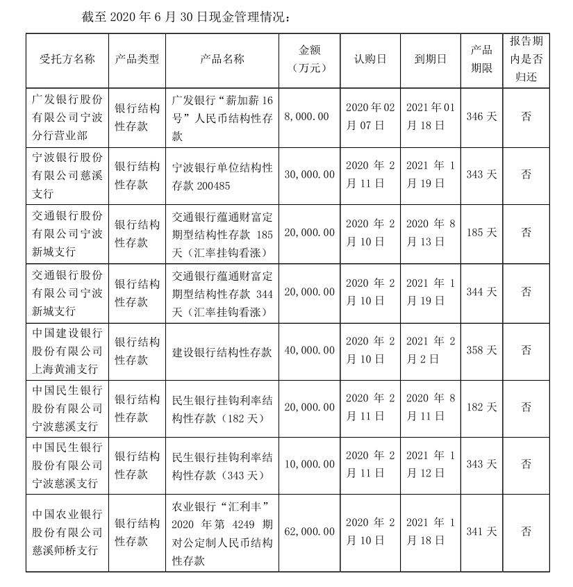凤凰网财经《启阳路4号》发现,虽然上半年经营业绩一般,但公牛集团资金充裕,截至2020年6月30日,公司的货币资金为24.36亿元,其中包括23.35亿元的银行存款。