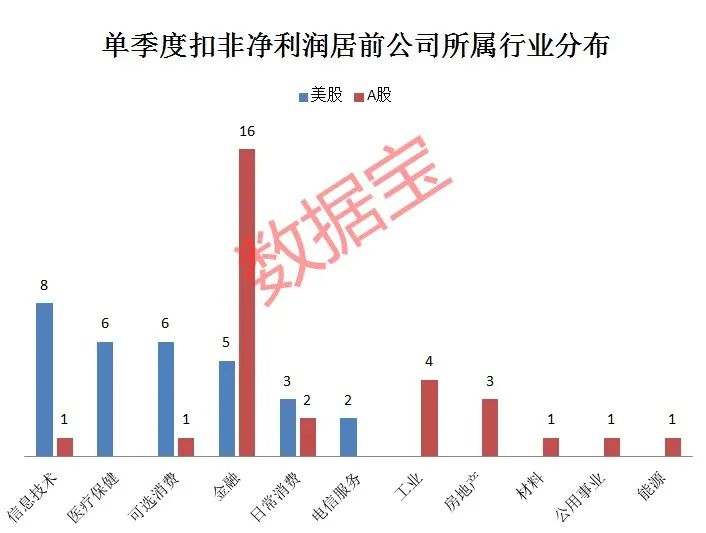 上述30家公司合计实现盈利1679亿美元,以最新汇率计算有1.15万亿元人民币。30家公司的所属行业为信息技术、可选消费、医疗保健、金融、日常消费和电信服务,分别有8家、6家、6家、5家、3家和2家。