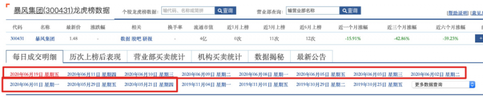 龙虎榜数据显示,5-6月期间,暴风集团登上龙虎榜多达11次。