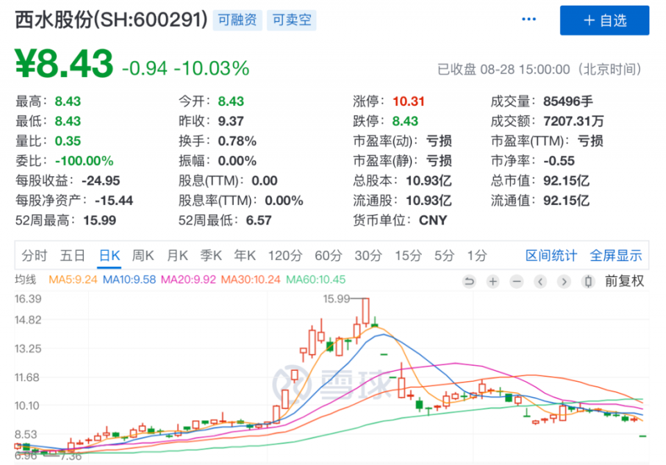 西水股份亏掉3倍市值