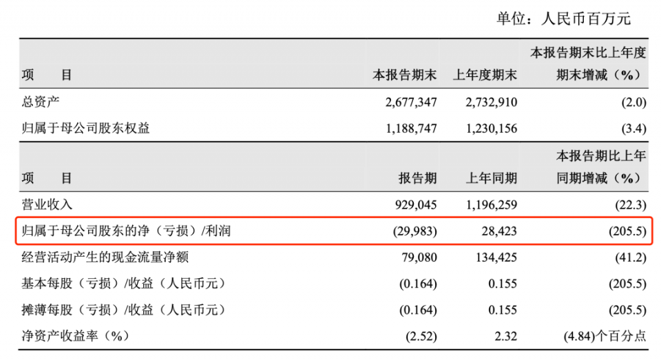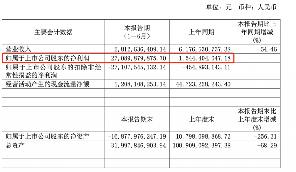据西水股份披露,今年上半年,其录得营收28.13亿元,同比下滑54.46%;归母净利润则巨亏270.90亿元。