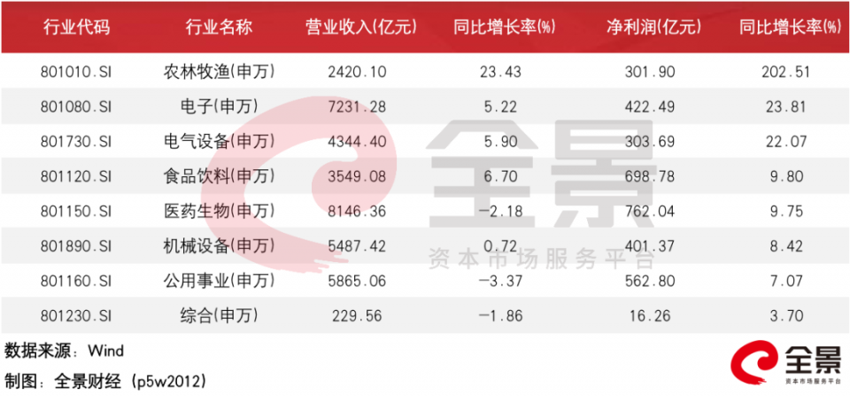 从利润端观察,上半年农林牧渔、电子、电气设备、食品饮料、机械设备和医药生物净利润同比增长逾8%。除了受惠农产品涨价的农林牧渔上半年净利润暴增204%外,医药生物同样是疫情下的受惠行业。