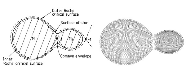左图为相接双星的结构图,右图为相接双星位相图。(图源:云南天文台)