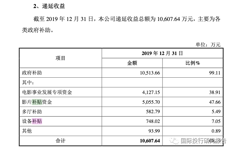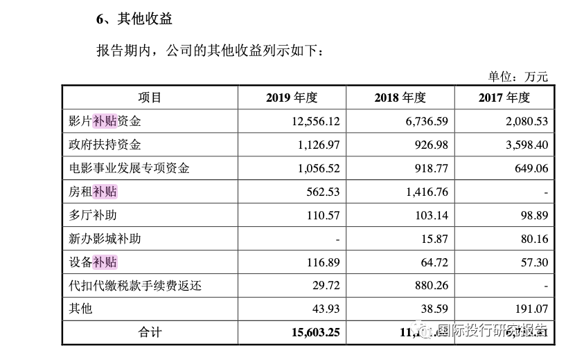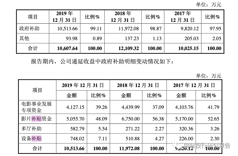IPO说明书可以知道补贴的细节,包括了电影事业发展专项资金、影片补贴资金等,2019年达到1.06亿,2018年则达到1.21亿。