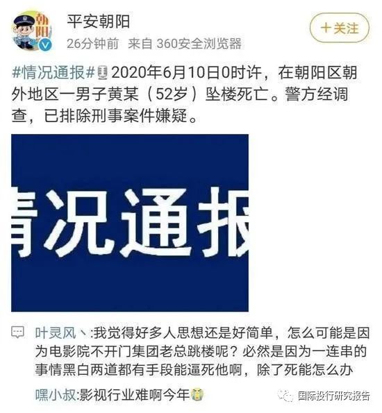 2020年,新冠肺炎冲击了整个电影产业,博纳收入锐减,这些数据凌通社也不去说了,而最令人扼腕的是副总裁黄魏跳楼自杀。