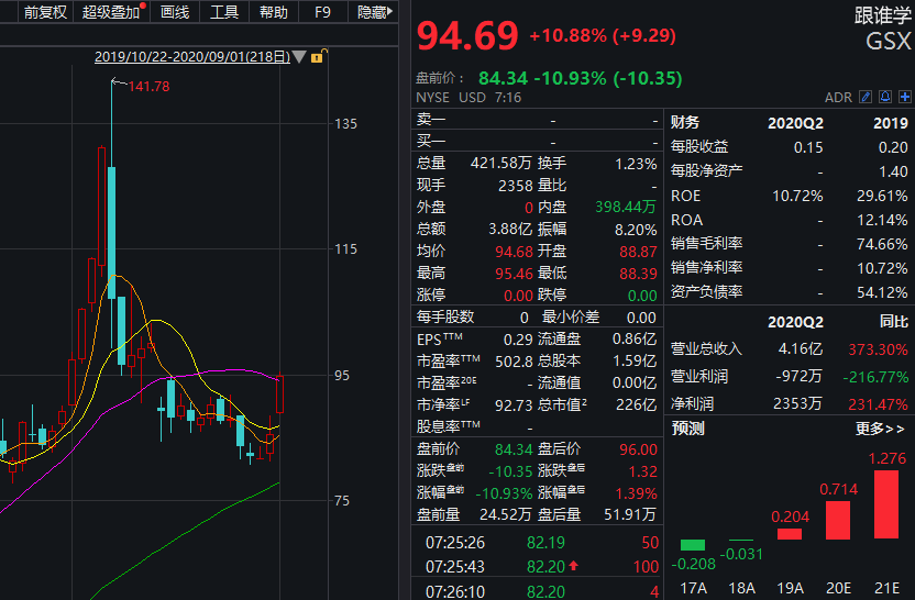 除连续增长的业绩外,跟谁学股价表现也抢眼。据统计,跟谁学今年以来股价涨幅高达333%,期间市值一度超过新东方,最新总市值达226亿美元。