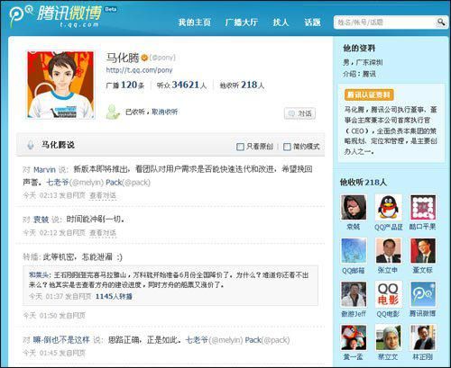 当时为了抢占市场,马化腾亲自上阵,邀请名人朋友,发动腾讯总办高管入驻腾讯微博,同时腾讯系各个产品也都在向微博导流。