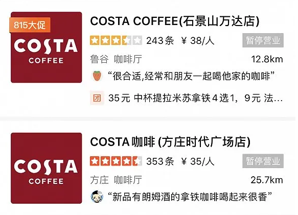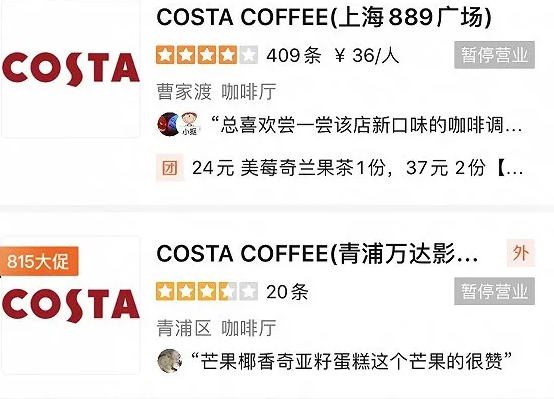 据央视财经报道,今年6月底,Costa在青岛的门店全线撤出市场,但是现在这家咖啡馆仍在运营。实际上,它已经属于青岛本土的一家咖啡品牌。记者发现,在Costa咖啡闭店的第二天,一家新的咖啡馆就在同一个位置开业了。在一家新开的咖啡馆里,仍能够看到Costa咖啡的痕迹,比如带有Costa咖啡标志的海报、咖啡机等等。记者用大众点评等软件搜索,结果显示Costa咖啡在青岛的所有门店均为闭店歇业状态。