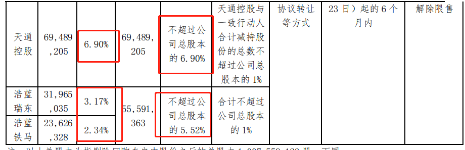 浩蓝瑞东及其一致行动人浩蓝铁马拟合计减持5559.14万股,占公司总股本的5.52%。