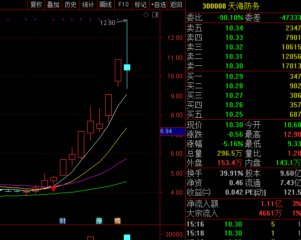9日这一天,天海防务由涨转跌,当日振幅达到32.87%。