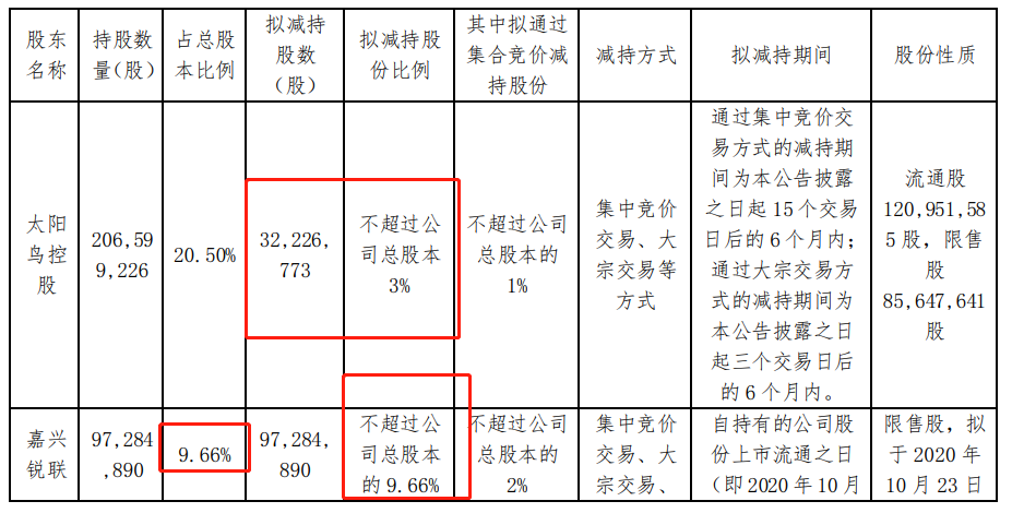 嘉兴锐联拟减持不超过9728.49万股,占公司总股本的9.66%;