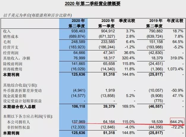 8月6日,中芯国际公布2020年第二季度财报,公司营收和净利润均创单季历史新高,二季度销售额为9.385亿美元,相比去年同期增长了18.7%。实现净利润1.38亿美元,同比增长644.2%。