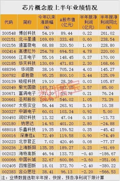 9只芯片概念股上半年业绩有望翻倍