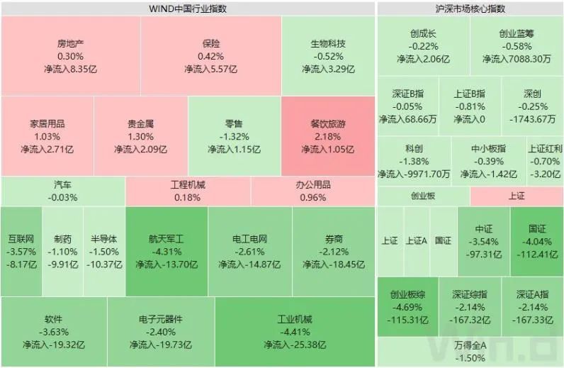 保险、贵金属、地产等蓝筹护盘较为明显;受到双节临近的契机,餐饮旅游成为确定性较高资金避险的去处。
