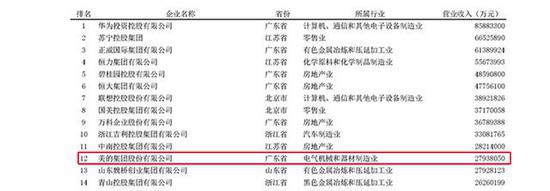 家电行业中,共有五家企业入围。美的集团位居第12名,营业收入27938050万元;TCL集团位居34名,营业收入13733897万元;奥克斯集团位居第97名,营收7354067万元;创维集团位居第268名,营业收入3425405万元;格兰仕位居第488位,营收2074255万元。