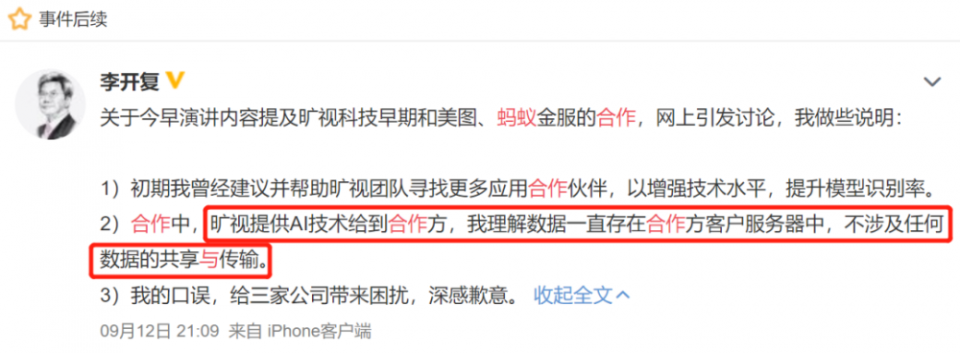但这件事,还是随着这几篇高举 “ 数据安全 ” 大旗的声明和李开复的道歉划上了句号。