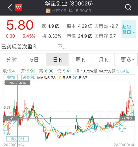今年8月,华星创业发布2020年半年度业绩报告称,上半年归属于上市公司股东的净利润由盈转亏,亏损约3800万元,去年同期净利润约344万元,同比下降1203.12%。营业收入约为3.35亿元,同比下降37.05%,基本每股收益亏损0.0887元,同比下降1208.75%。